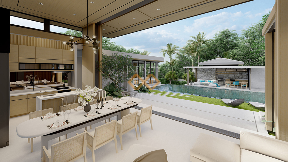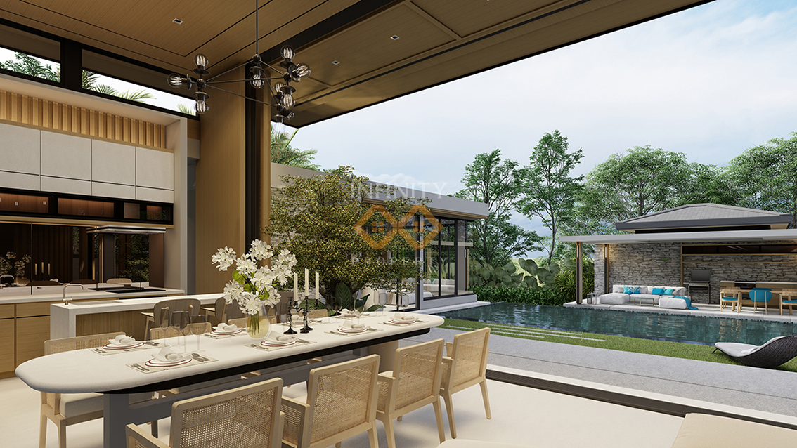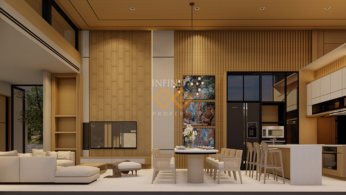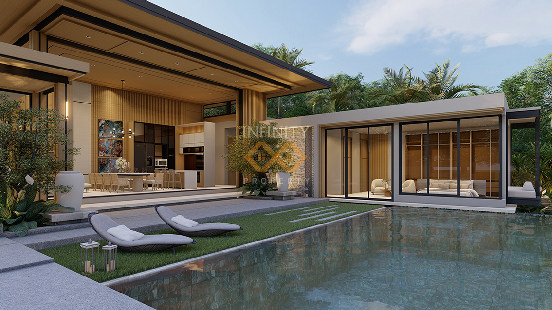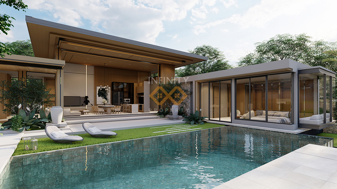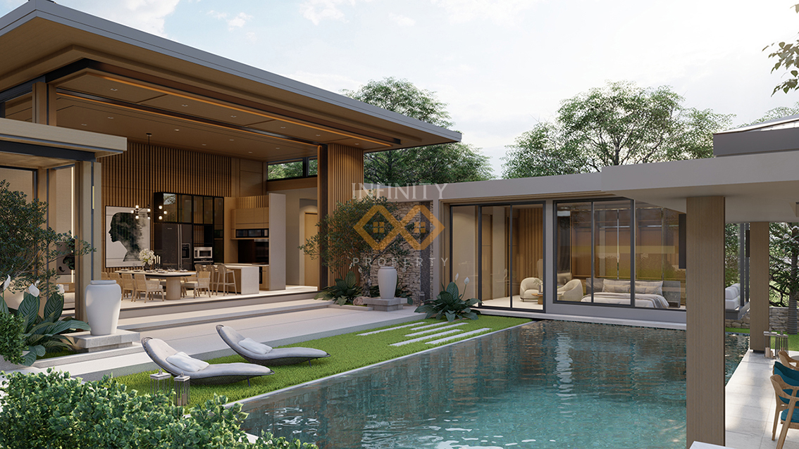 The villa itself boasts generous built-up area of 300-550 square meters, providing ample space for comfortable living. The architectural design of the villa combines comtemporary elegance with traditional Thai influences, creating a harmonious and visually stunning appearance.