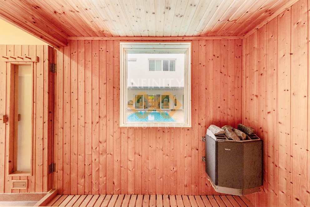 Green area. Gym and outdoor swimming pool