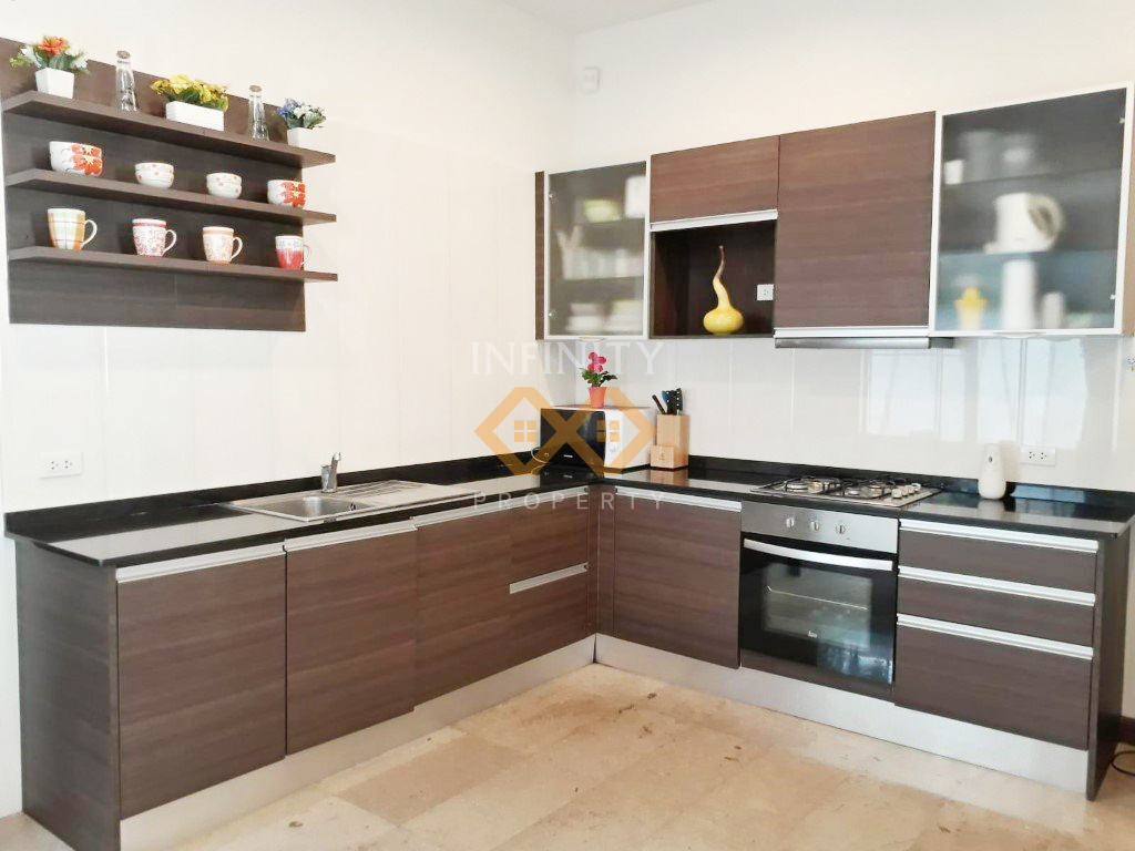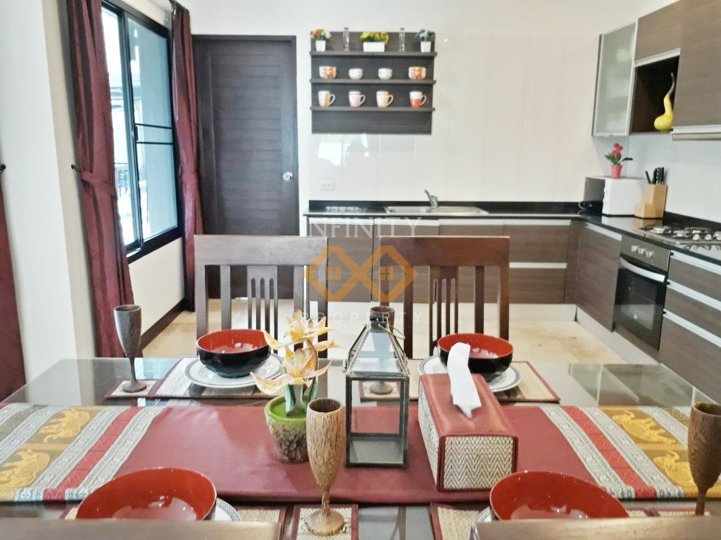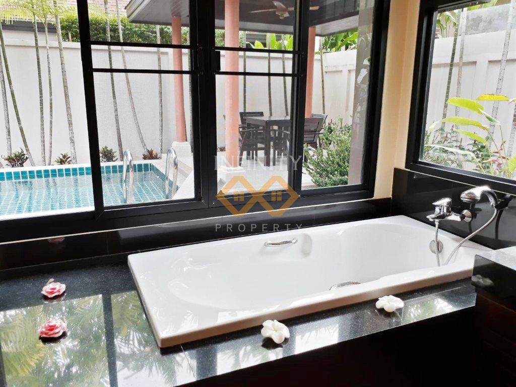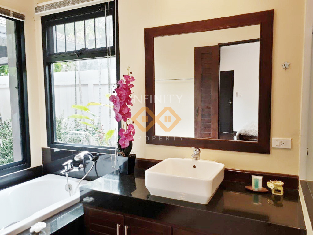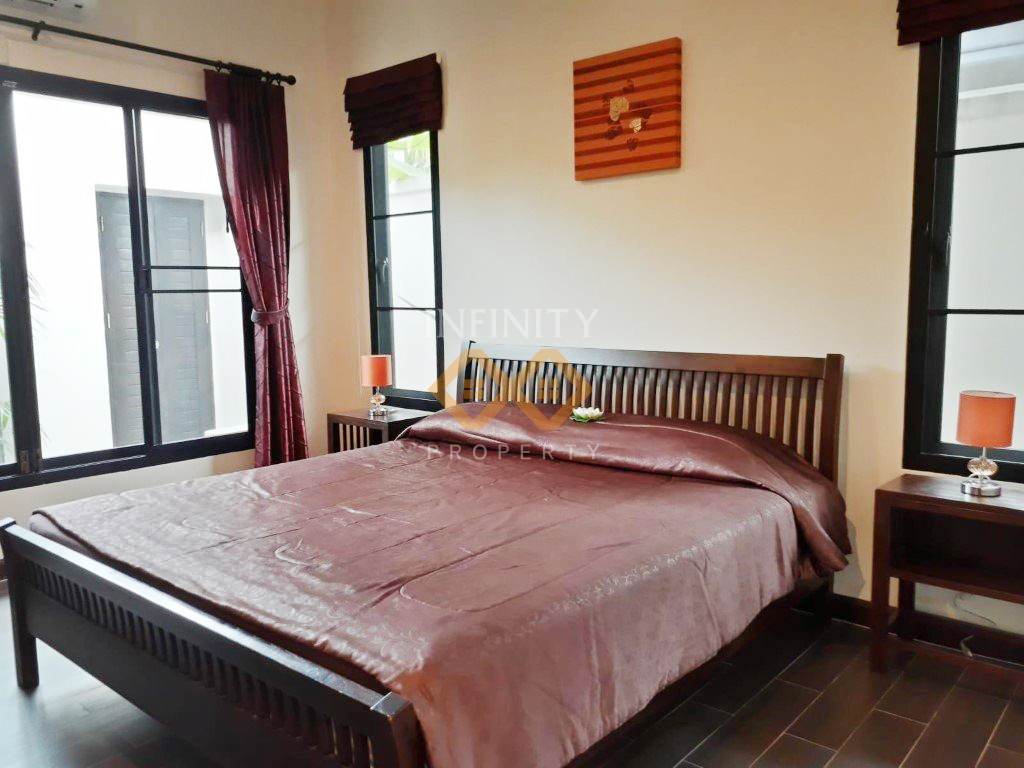 This exquisite Thai-Balinese style pool villa features a private swimming pool and comes fully furnished with high-quality furniture and elegant decor. Located in a peaceful and well-maintained residential community, the villa offers a serene and private living environment.