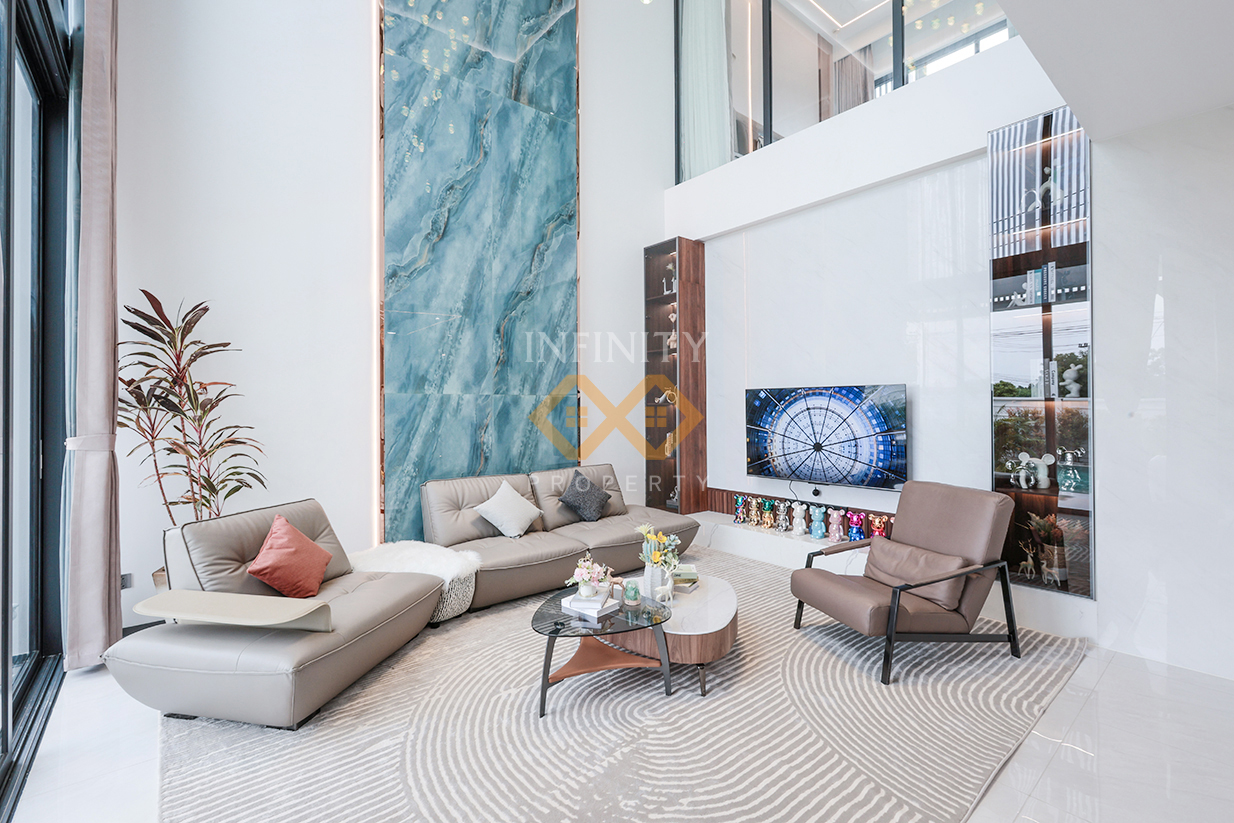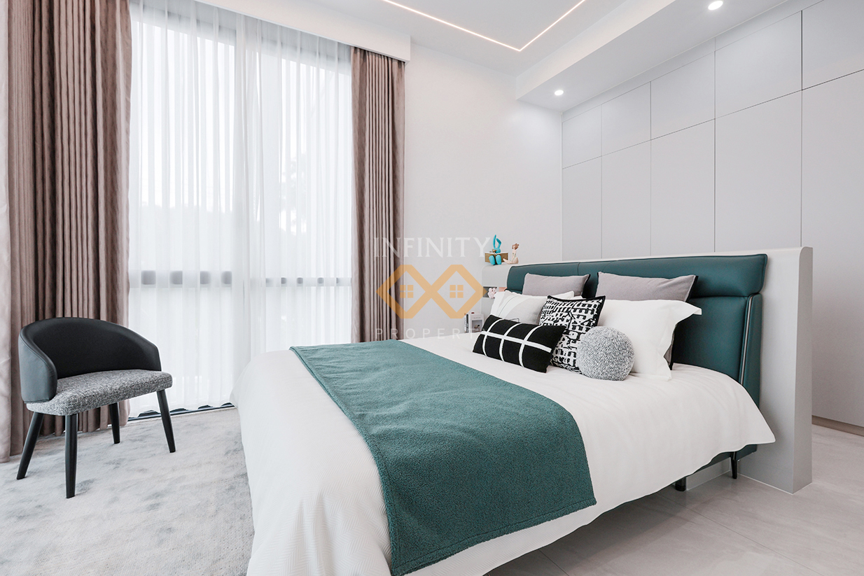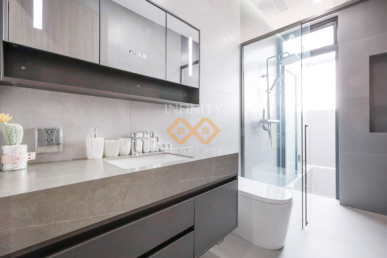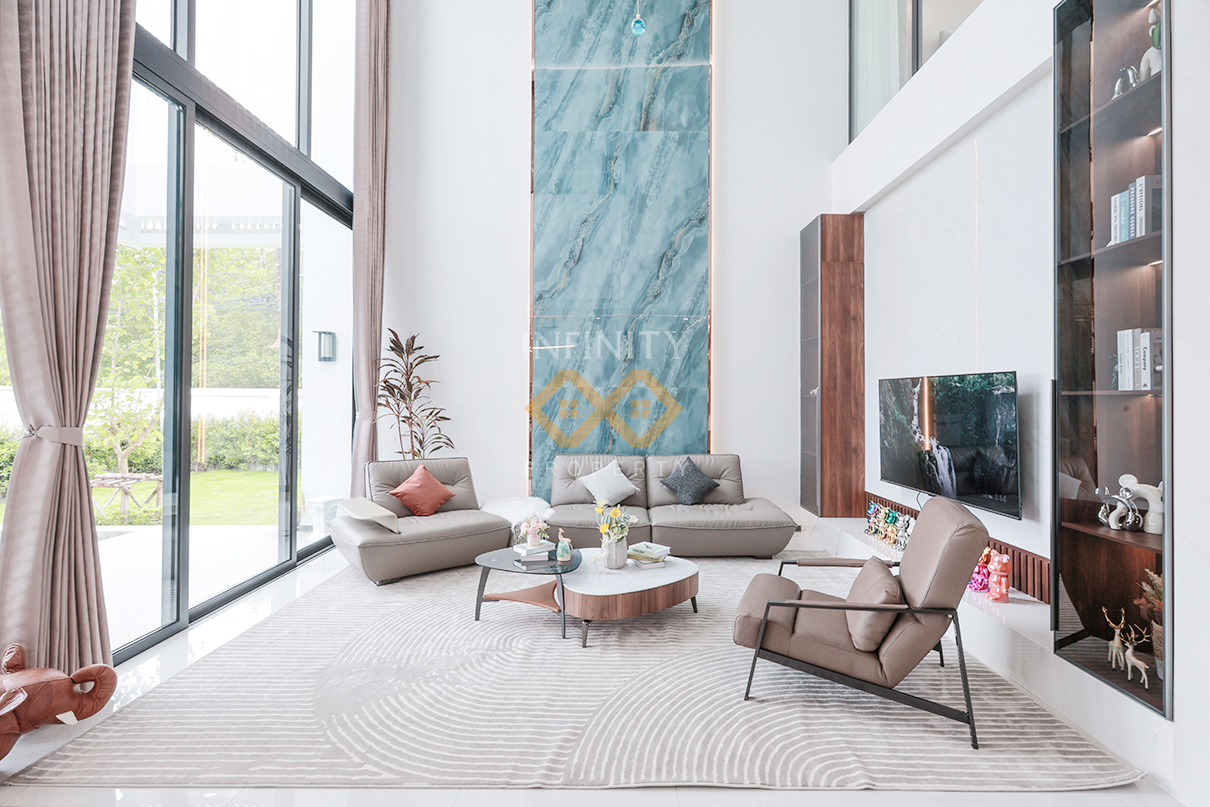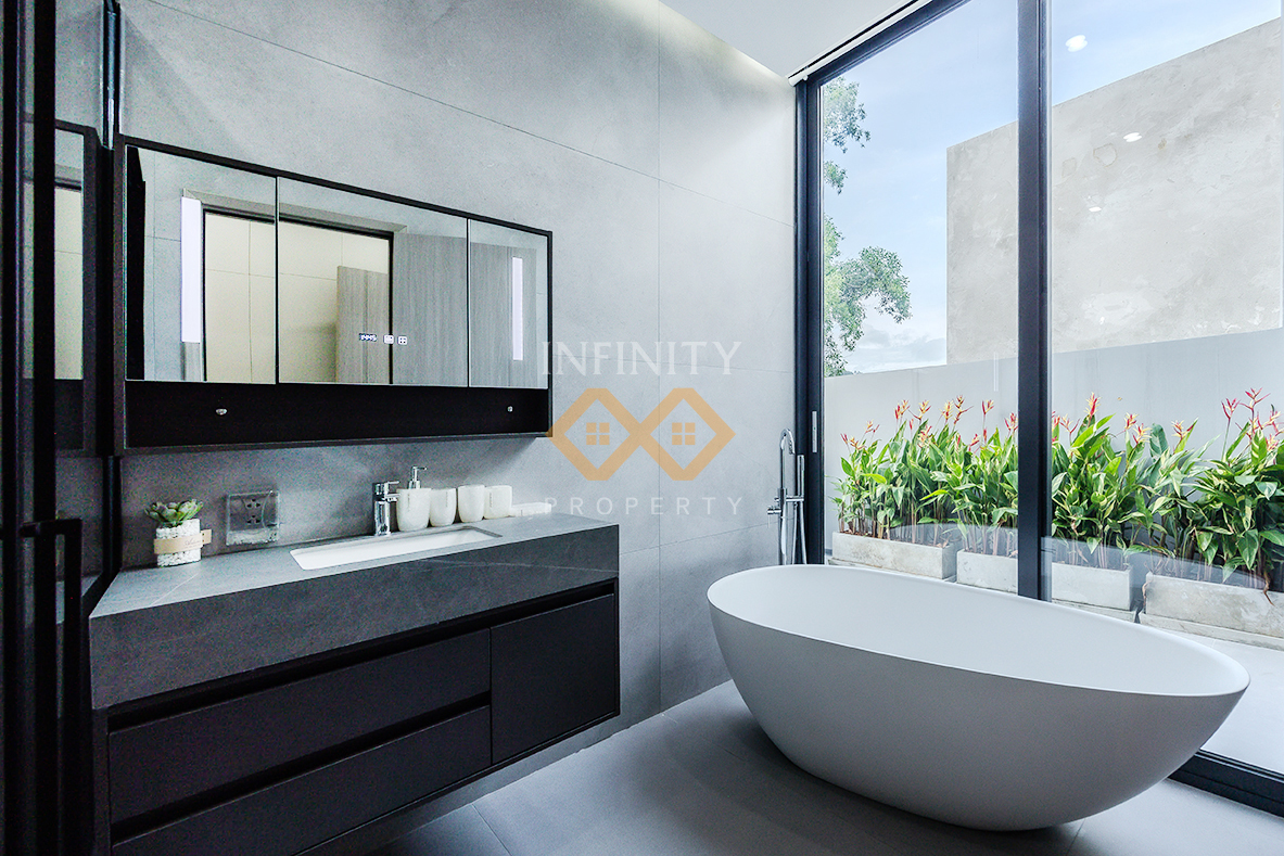 The villa’s Urban Modern design emphasizes simplicity with a touch of sophistication. Using premium materials, every detail is meticulously crafted to exude elegance while ensuring practical functionality. The thoughtfully allocated spaces cater to both relaxation and productive living, making it a perfect home for modern lifestyle.